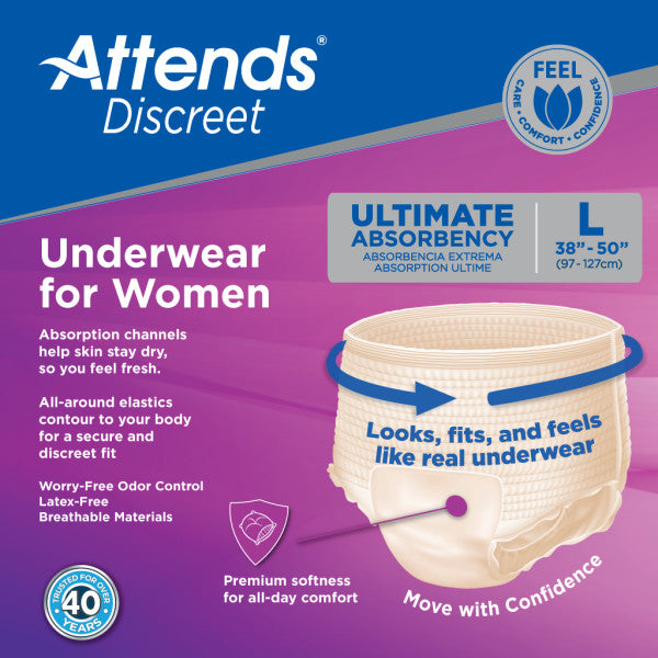 ADUF30 - Attends Discreet Women's Underwear, Urinary, Large , 18 Counts