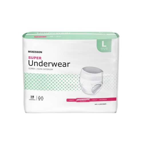 Experience the ultimate in comfort and protection with McKesson Super Incontinence Underwear. These unisex adult absorbent underwear have tear-away sides for easy removal and a premium acquisition layer that rapidly absorbs fluids. The advanced contoured dual-core performance prevents leaks and the premium odor control keeps you feeling fresh. With a soft, stretch waistband, these disposable underwear provide a comfortable, secure fit just like regular underwear.